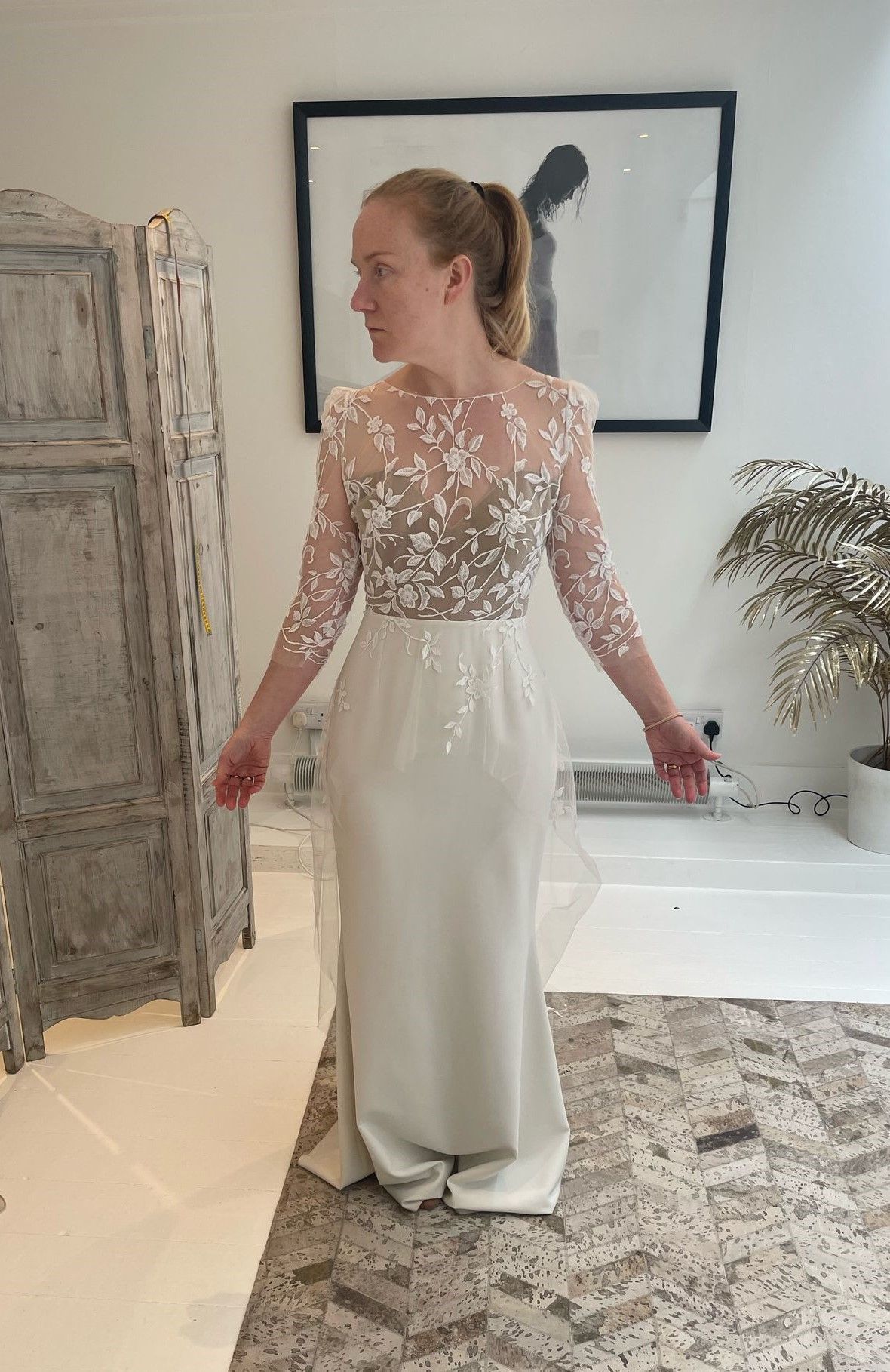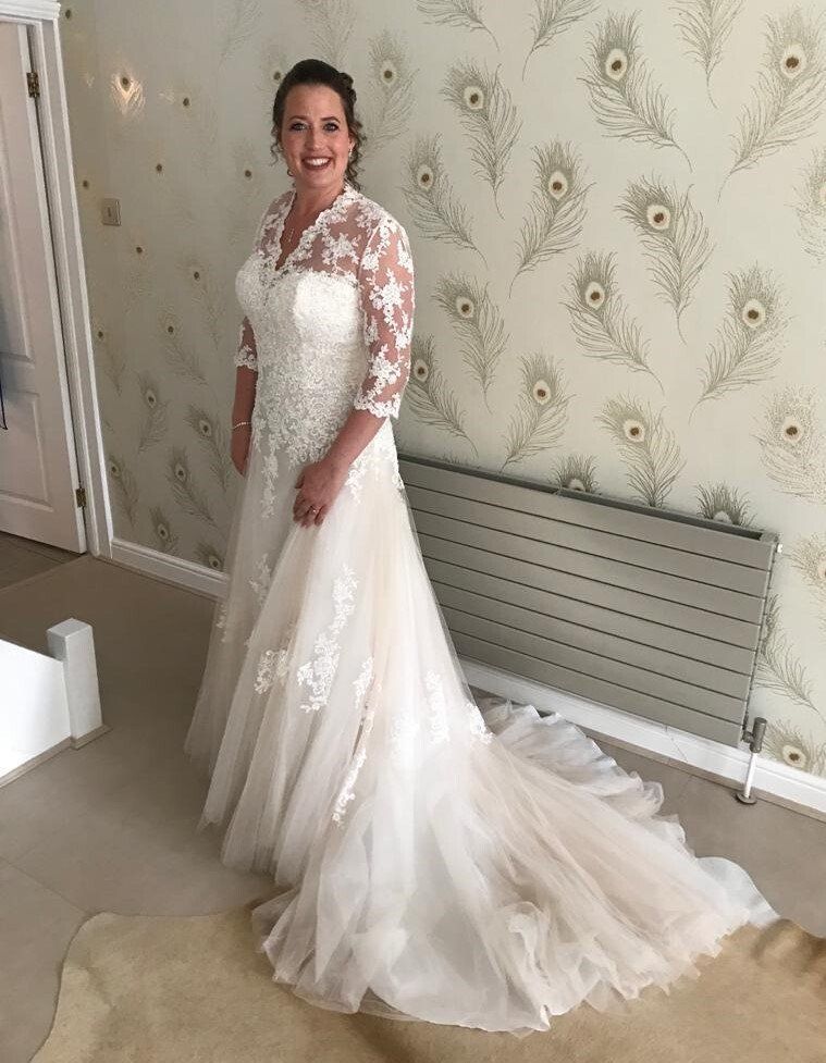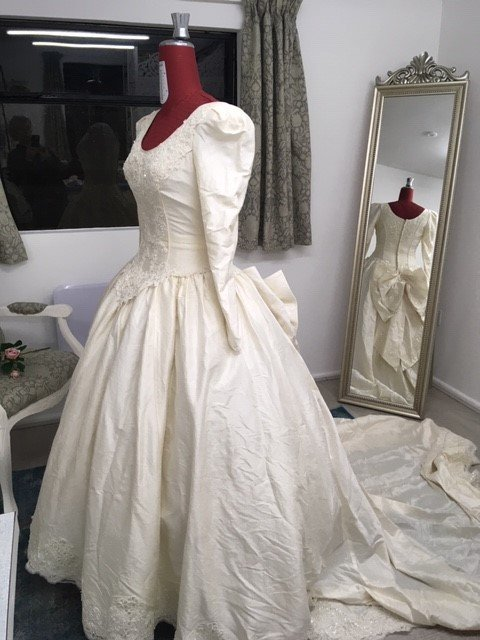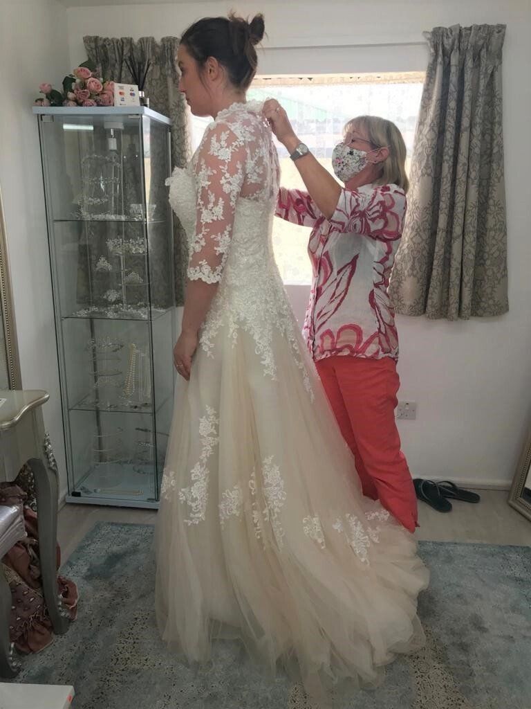 This wedding dress was perfect for restyling, it had a beautiful lace bodice which Caroline managed to find a suitable lace to compliment.