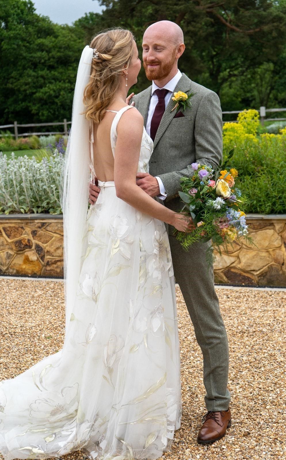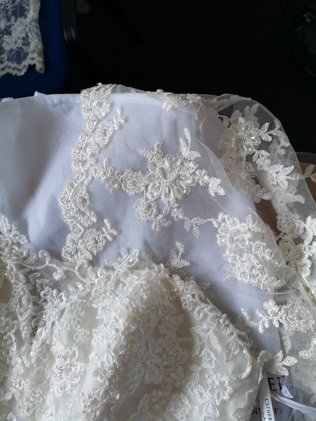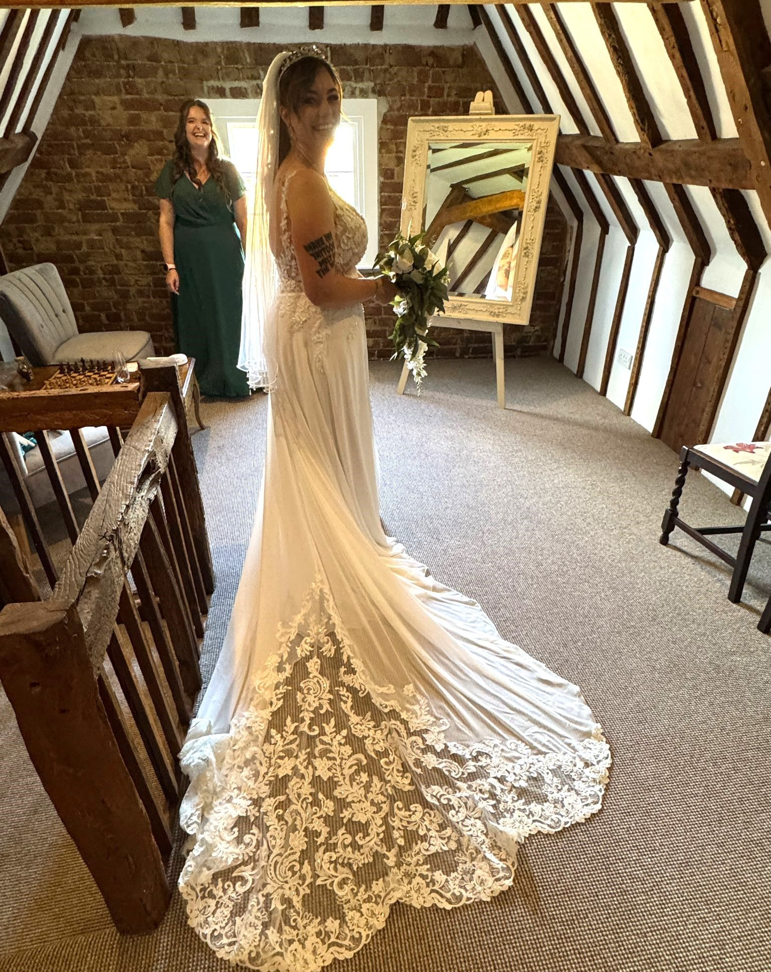 This wedding dress was perfect for restyling, it had a beautiful lace bodice which Caroline managed to find a suitable lace to compliment.