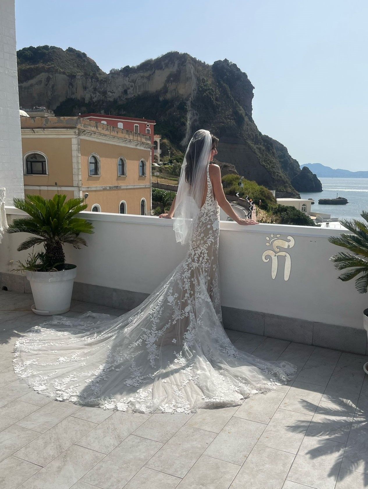 - Brides who have a deep bust are better off with a V neck line as it gives the bodice a much longer line.